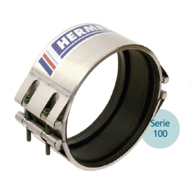Abrazadera HERMETICA, diseñada tanto para la conexión de tuberías como para la reparación de las mismas, en tubos de fibrocemento, acero, fundición, PVC, polietileno, PRFV, poliester…