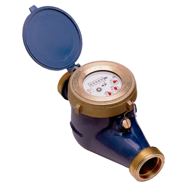 Contador chorro múltiple DN50 de salida R.M. 2.1/2″, incluidos racores con conexión R.M. 2» a tubería.