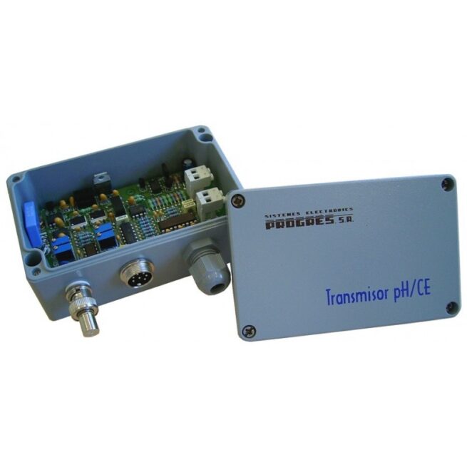 Transmisor doble para la lectura de un sensor de pH y otro de conductividad eléctrica (CE) de 4 electrodos en el agua de riego.